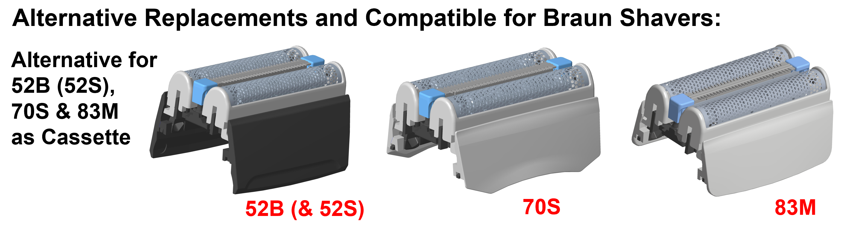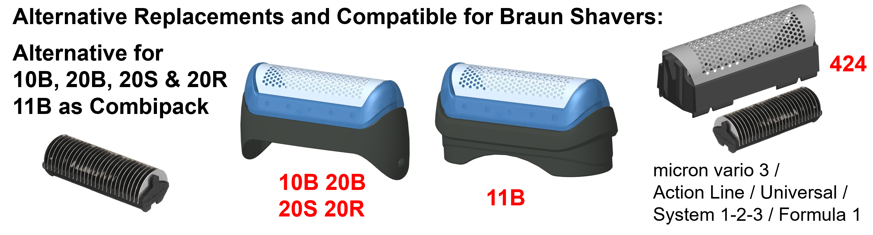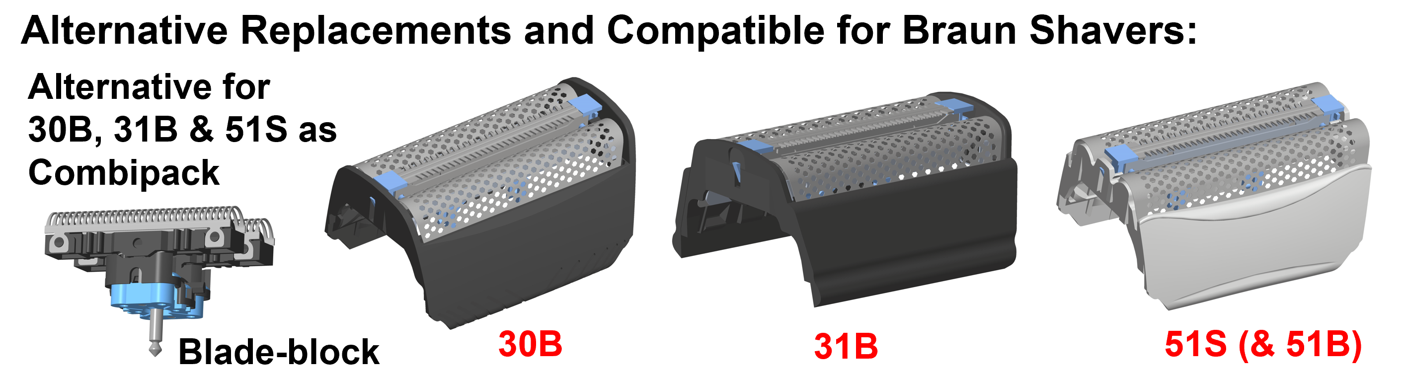 There are also alternative foils with cutters developed by Shaver-Parts for Braun and Panasonic shavers. We `Shaver-Parts' selected for you the best and biggest foil and blade (cutter) factory in China. Shaver-Parts have the exclusivity rights to sell these foils & cutters to you.
